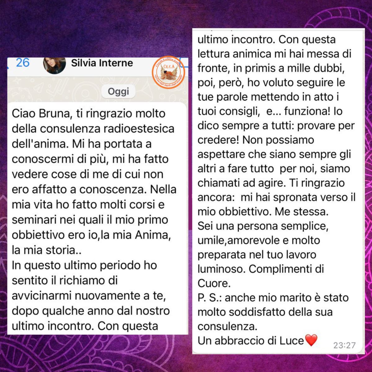 Da moltissimo tempo lavoro nella relazione di aiuto avvalendomi di varie tecniche energetiche rapide e davvero efficaci per la risoluzione di qualsiasi blocco, conflitto emotivo, disagio psicofisico o ostacoli di vita.