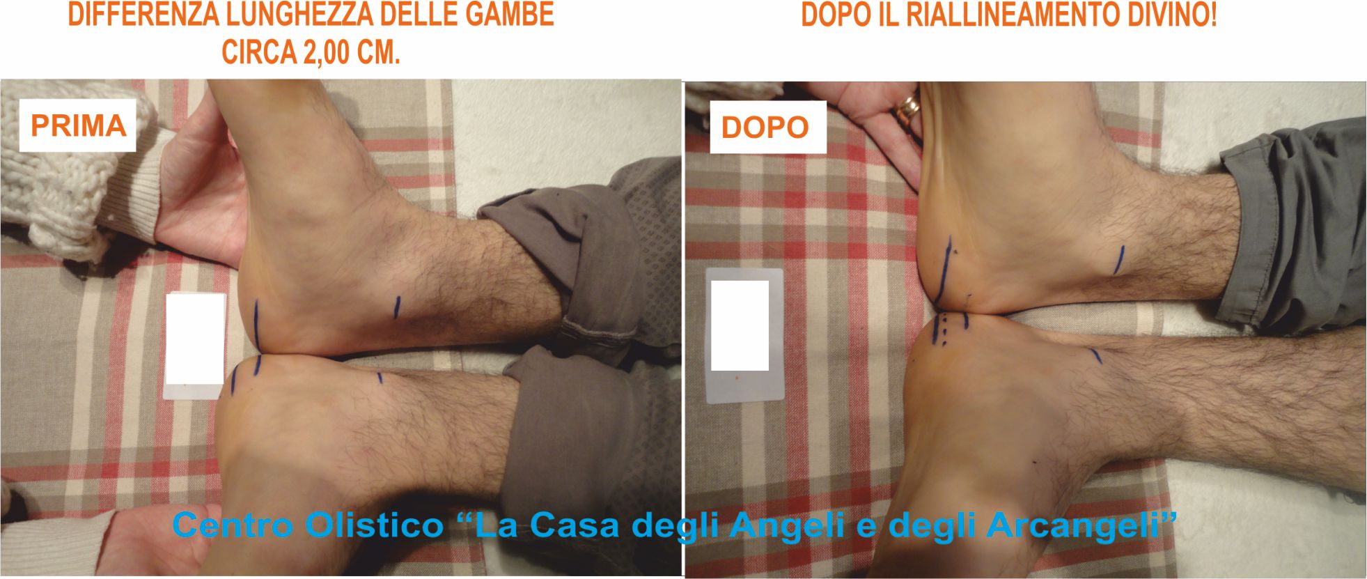 Con Allineamento Divino è possibile che le Scoliosi fino a 30 gradi regrediscano immediatamente e persino che le scoliosi più gravi, croniche, possano ridursi gradualmente; casi di zoppia possono riequilibrarsi notevolmente.