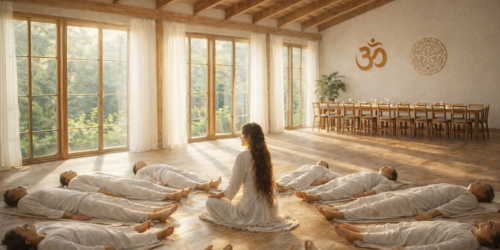 E al centro, una donna che guida meditazioni e percorsi interiori.